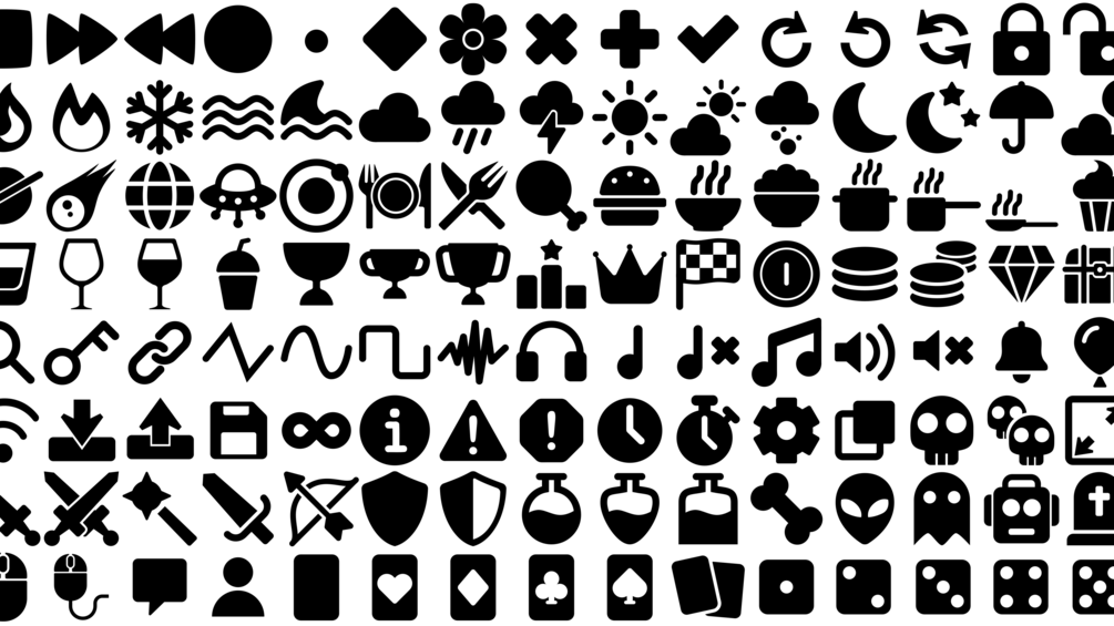 In this package, you'll get 160 common game icons in a flat-style design, with various categories: symbols, arrows, food, weapons, weather...